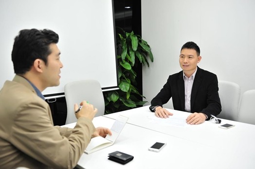 研讨会开始前,,,,方玉友接受韩国《福布斯》杂志记者的场外专访